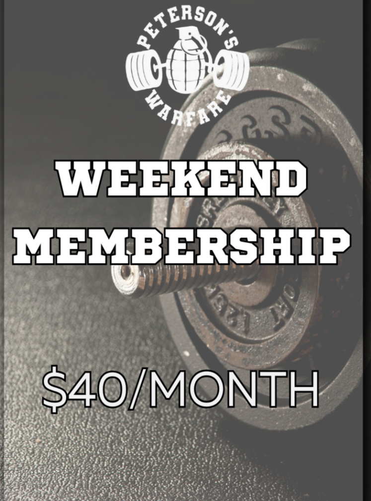 This membership provides access to our facility and premium equipment but just for the weekends. Long commute? Work? Kids? This one was requested by many so we made it a possibility. Your access starts at 12am Friday and ends at 11:59pm Sunday.